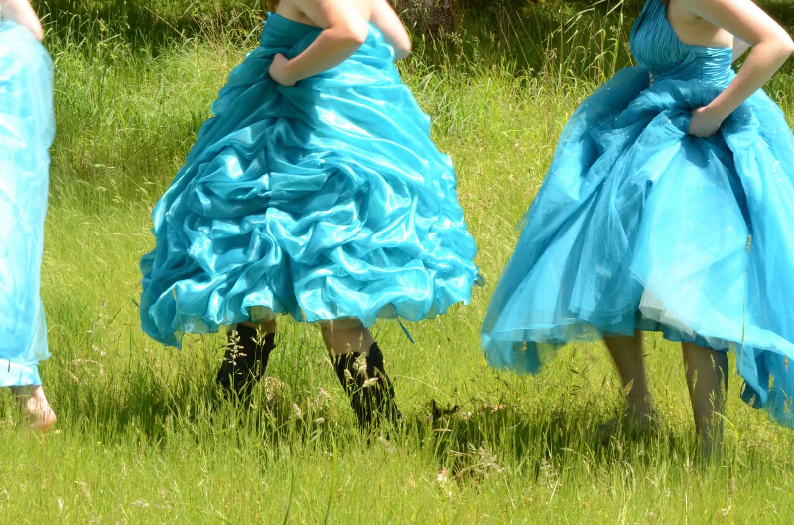 The girls looked liked little girls tromping through the field lifting up their dresses... love the boots on on girl!